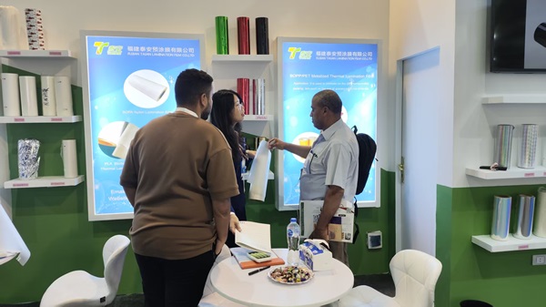 2025 मध्ये,फुझियान ताएयन लॅमिनेशन फिल्म कंपनी, लि.इजिप्तमधील आंतरराष्ट्रीय पॅकेजिंग, मुद्रण आणि कागद प्रदर्शनात एक आश्चर्यकारक देखावा (2 पॅक मुद्रित करा). बूथ क्रमांक 2 ए 4 - 1 होता. ब्रँड लोगोसह डिझाइन सोपे आणि भव्य होते. "जादू"ठळकपणे प्रदर्शित केले, ज्याने केवळ एंटरप्राइझची व्यावसायिक प्रतिमाच दिली नाही तर मुक्त संप्रेषणाचे वातावरण देखील तयार केले. प्रदर्शन स्टँडवर, प्रदर्शनातूनथर्मल लॅमिनेशन फिल्मभौतिक स्वरूप आणि मल्टीमीडिया बोर्डमधील उत्पादने, हे विस्तृतपणे सादर केले: उत्पादनांच्या फॉर्मपासून ते अनुप्रयोग परिस्थितीपर्यंत, तांत्रिक वैशिष्ट्यांपासून ते नाविन्यपूर्ण फायद्यांपर्यंत, स्पष्टपणे आणि अंतर्ज्ञानाने तियानची कठोर-कोर सामर्थ्य स्पष्टपणे दर्शवतेथर्मल लॅमिनेशन फिल्मजागतिक प्रेक्षकांसाठी फील्ड, मोठ्या संख्येने व्यावसायिक अभ्यागत, तोलामोलाचा आणि खरेदीदारांना थांबविण्यासाठी आणि लक्ष देण्यास आकर्षित करते.